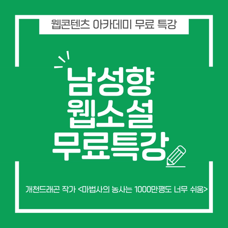 작가를 꿈꾸는 이들이라면 누구나 들을 수 있는 강의!