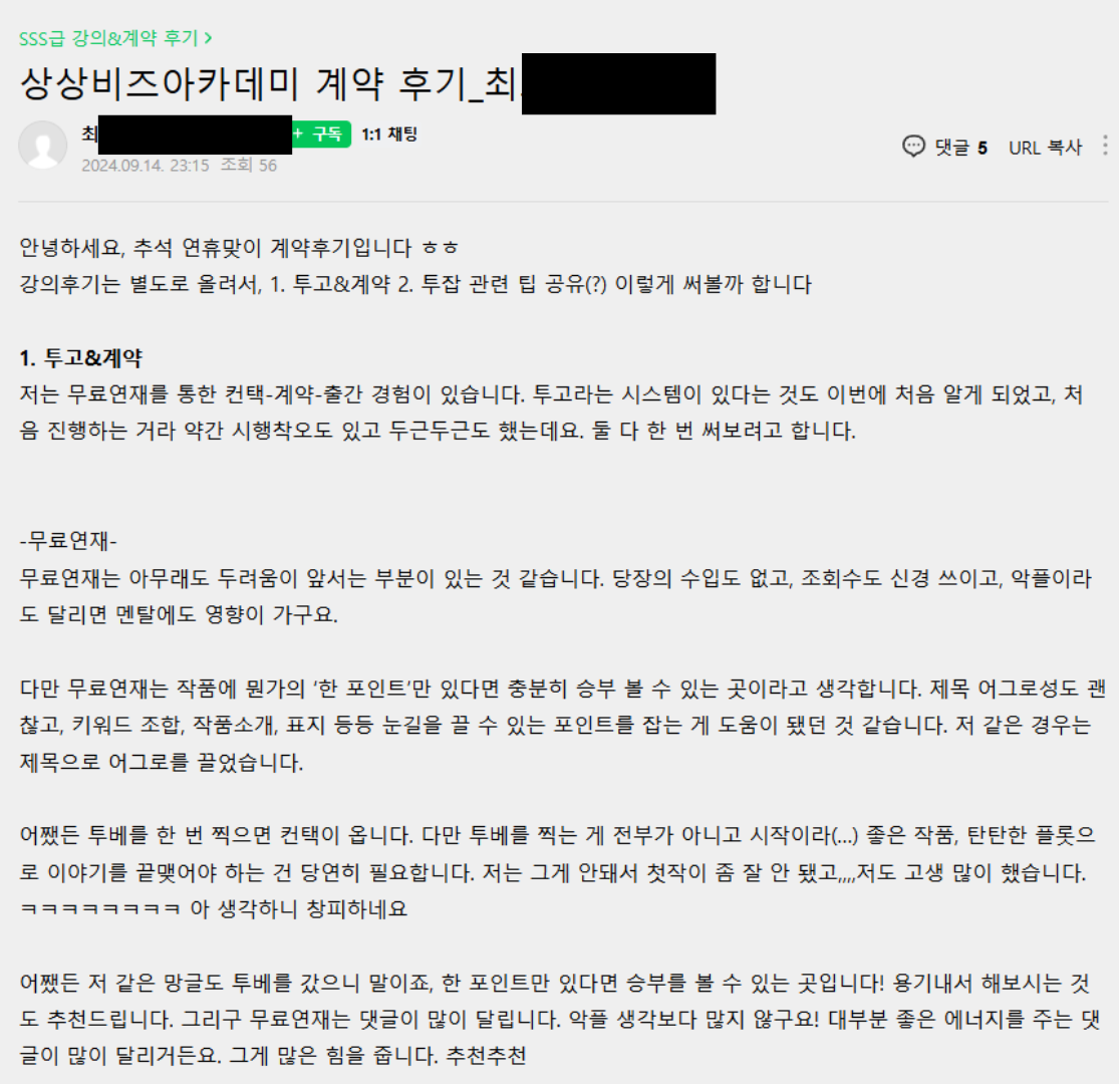 [계약 후기] 상상비즈 아카데미 최** 작가님